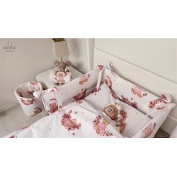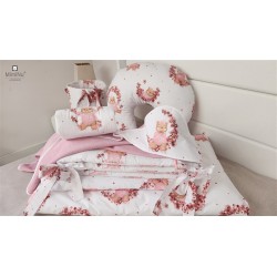 W skład kompletu wchodzi: poszwa 135x100 cm, poszewka 40x60, kołdra 135x100 cm, poduszeczka 40x60 cm oraz ochraniacz 180x30 cm.