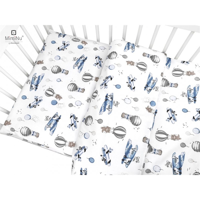 Komplet pościeli 2 elementowej JUNIOR 140x200 cm + 70x80 cm lub 140x200 + 50x60 cm (MOŻLIWOŚĆ WYBORU) BAWEŁNA 100% SAMOLOTY BŁĘKIT