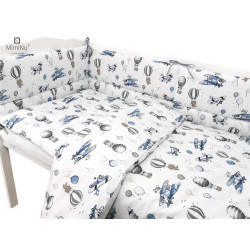 W skład kompletu wchodzi: poszwa 120x90 cm, poszewka 40x60, kołdra 120x90 cm, poduszeczka 40x60 cm oraz ochraniacz 180x30 cm.