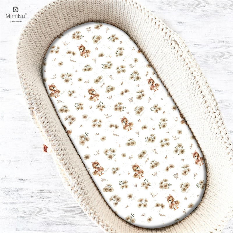 Prześcieradełko bawełnianie do kołyski z gumką 90x40 cm BAWEŁNA 100% KACZUSZKI BEŻ
