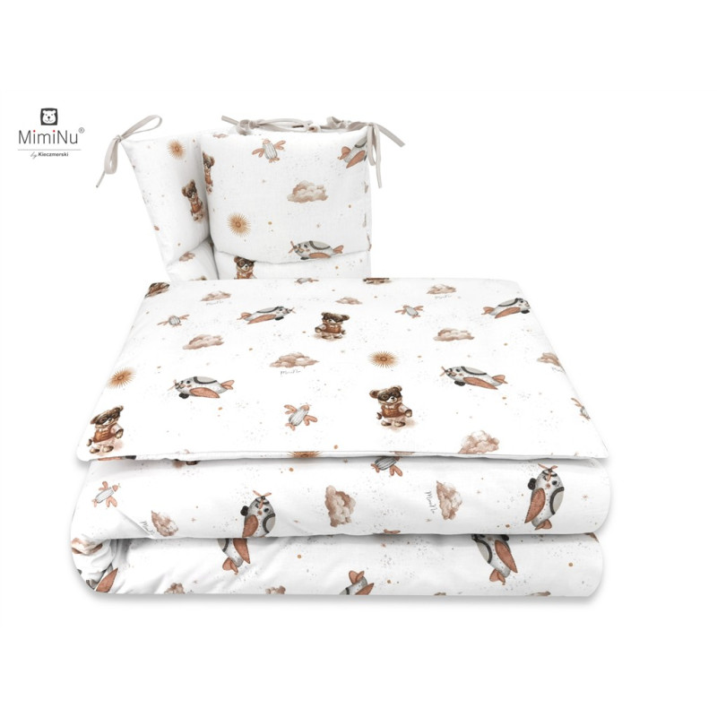 W skład kompletu wchodzi: poszwa 135x100 cm, poszewka 40x60 cm oraz ochraniacz 180x30 cm
