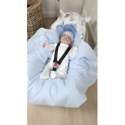 Otulak pasuje do wózków i fotelików zapinanych na 3 i 5-cio punktowe pasy bezpieczeństwa.