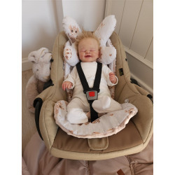 Montowany na dekoracyjne troczki ochraniacz pozwala na precyzyjne zabezpieczenie szczebelków łóżeczka i stworzenie kompozycji idealnej dla dziecka.