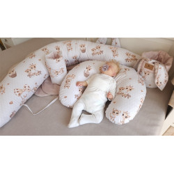 Komplet pościeli 5 elementowej 135x100 cm BAWEŁNA 100% ŻYRAFKI + BEŻ RÓŻOWY