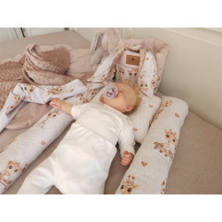Montowany na dekoracyjne troczki ochraniacz pozwala na precyzyjne zabezpieczenie szczebelków łóżeczka i stworzenie kompozycji idealnej dla dziecka.