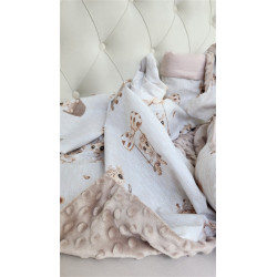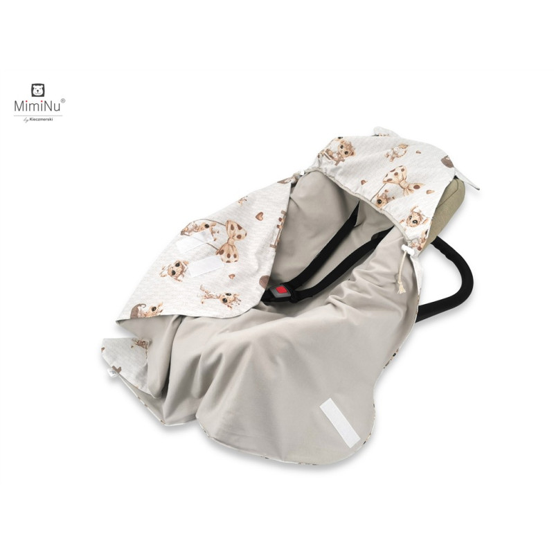 Otulak - Kocyk do wózka, fotelika samochodowego z kapturkiem 90x90 cm ŻYRAFKI + JERSEY BEŻ