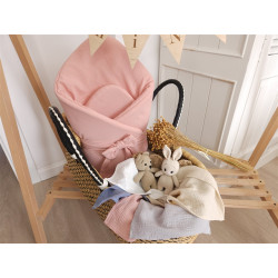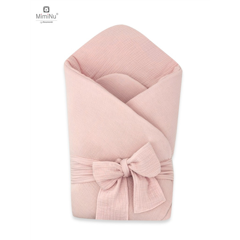 Rożek niemowlęcy 75x75 cm WIĄZANY z kokardą MUŚLIN BAWEŁNIANY BAWEŁNA 100% PUDROWY RÓŻ