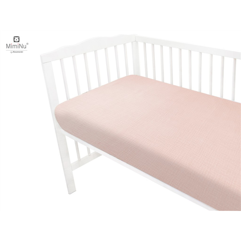 Prześcieradło z gumką 120x60 cm MUŚLIN BAWEŁNIANY PUDROWY RÓŻ