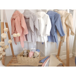 Szlafroczek dziecięcy z kapturkiem i uszami MUŚLIN BAWEŁNIANY - z ozdobną tasiemką