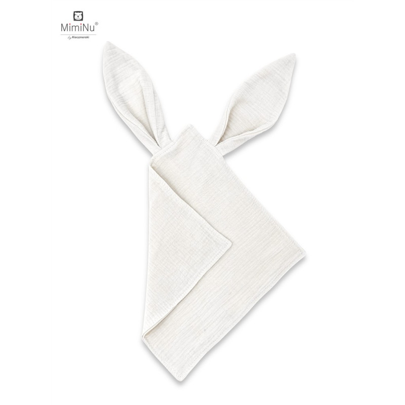Przytulanka/szmatka sensoryczna z szeleszczącym uszkiem MUŚLIN BAWEŁNIANY ŚMIETANKA