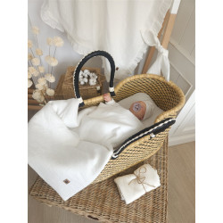 Zestaw DUO do wózka typu gondola, kołyski, kosza Mojżesza, łóżeczka: Poduszka ergonomiczna -kokon + lekka kołderka/kocyk 60x70 cm MUŚLIN BAWEŁNIANY PREMIUM - BAWEŁNA 100%