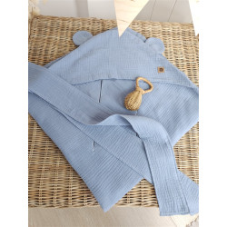 Otulak muślinowy - kocyk letni 90x90 cm Z KAPTURKIEM I USZAMI do nosidełka, fotelika kubełkowego MUŚLIN BAWEŁNIANY JEANS