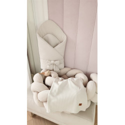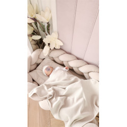 Warkocz do łóżeczka wykonany z dzianiny Interlock, wiązany bawełnianymi kokardami.