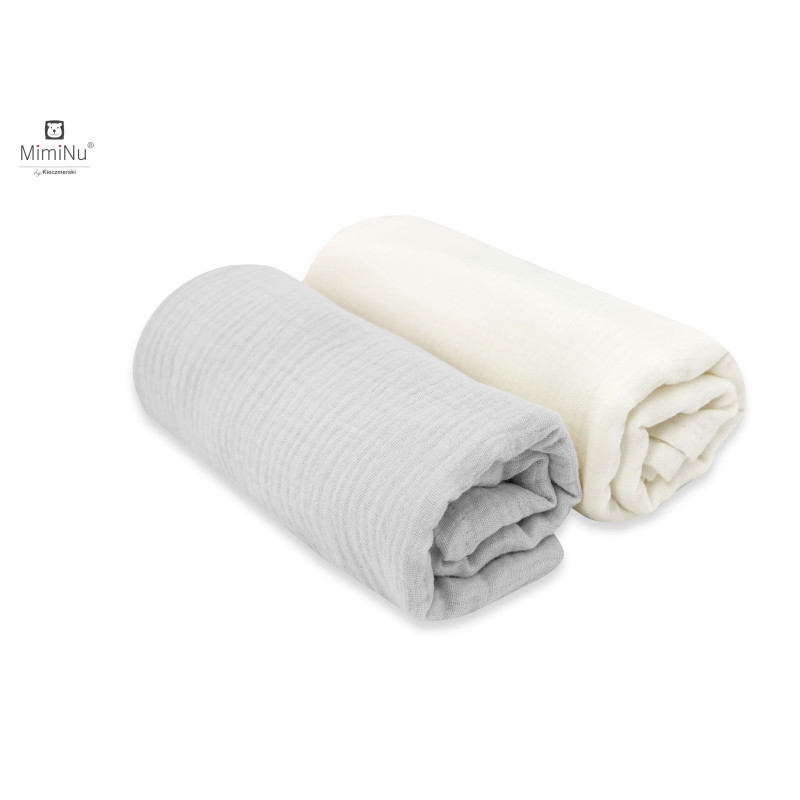 2 PACK - Pieluszka z muślinu bawełnianego (podwójna gaza) 30x30 cm MUŚLIN BAWEŁNIANY SZARY + ŚMIETANKA BAWEŁNA 100%