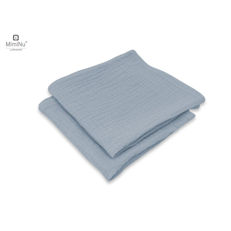 2 PACK - Pieluszka z muślinu bawełnianego (podwójna gaza) 30x30 cm MUŚLIN BAWEŁNIANY JEANS + ŚMIETANKA BAWEŁNA 100%